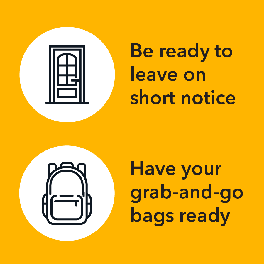 - Conditions can quickly change, and result in very short notice evacuation orders