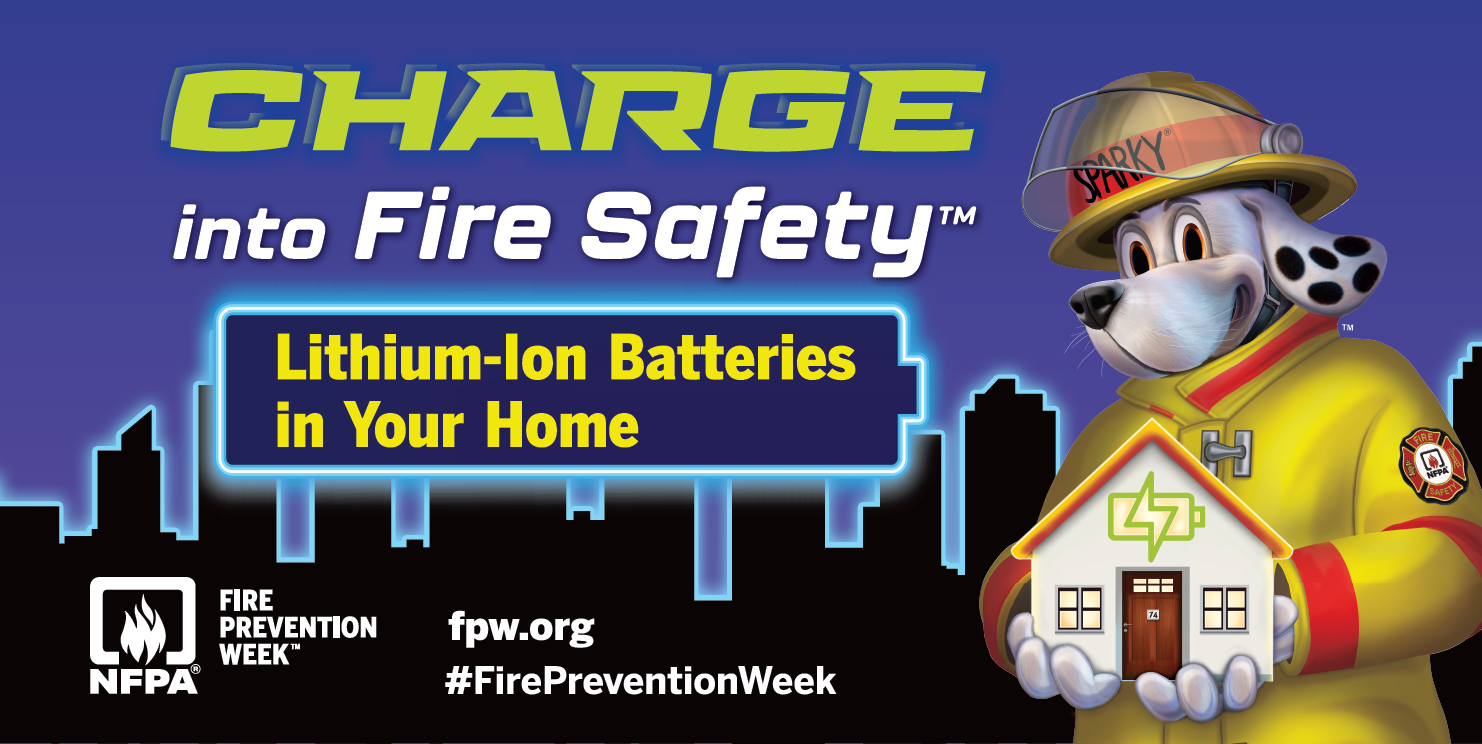This year’s Fire Prevention Week™ campaign, October 5-11, “Charge into Fire Safety™: Lithium-Ion Batteries in Your Home,” works to educate everyone about using these batteries safely. The campaign stresses how important it is to buy, charge and recycle safely when it comes to lithium-ion batteries.