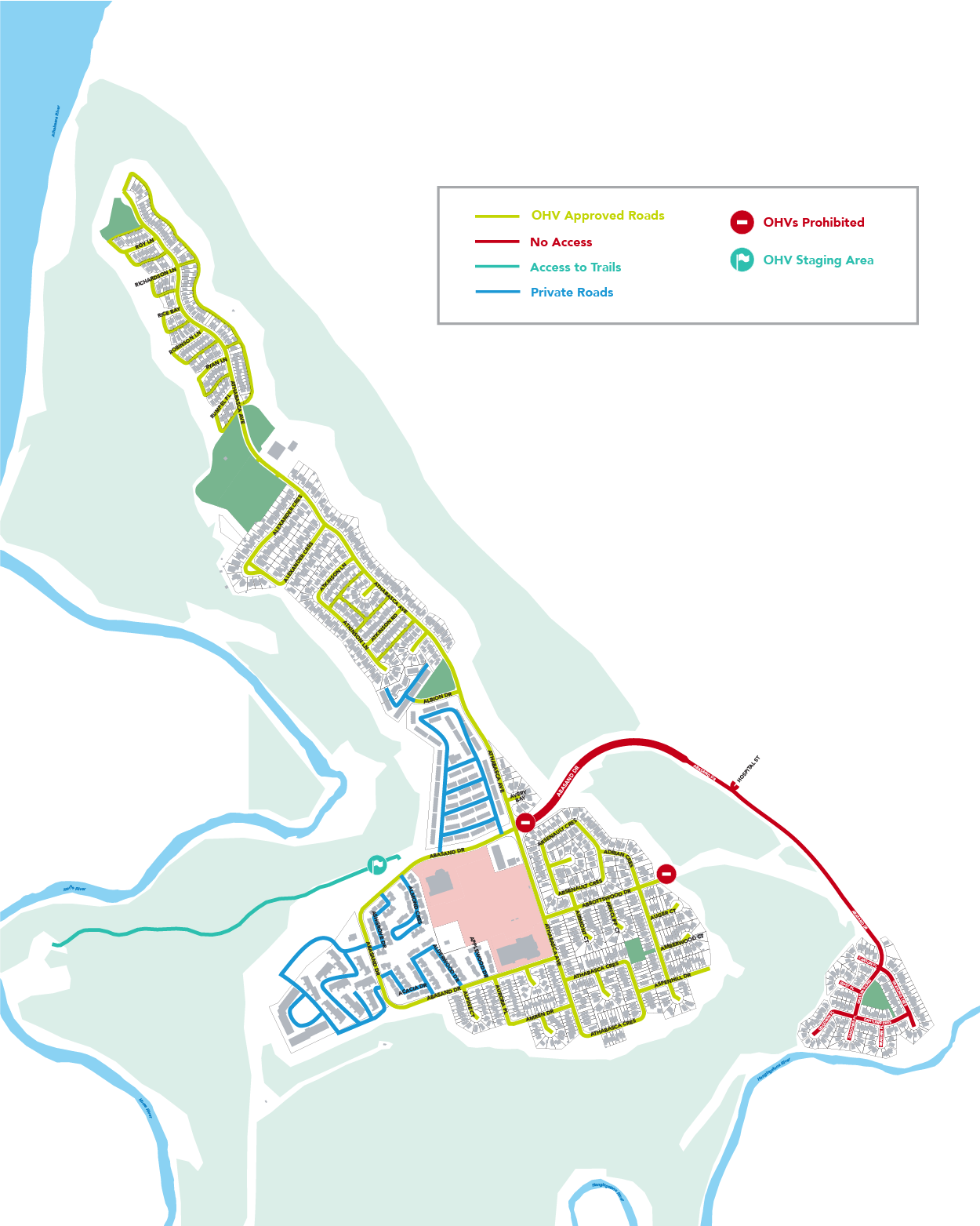 Check the Abasand OHV Pilot Project map to find the OHV approved roads, private roads and neighbourhood boundaries.