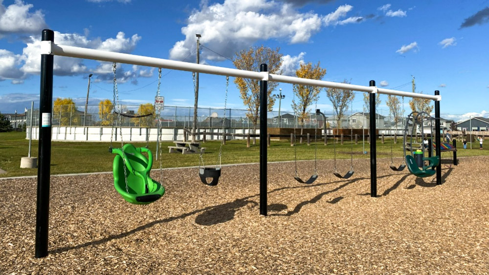 Most playgrounds in the RMWB use Engineered Wood Fiber as surfacing. This material is aligned with Canadian Playground Safety Institute (CPSI) safety standards, and in our region it has consistently received a higher safety rating than rubber on surface tests. It is wheelchair accessible, and meets the accessibility requirements set forth by the Canadian Standards Association (CSA).