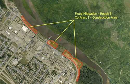 Clearing activities will begin in December to remove trees and brush within the construction limits in preparation for construction of Contract 1, an earthen clay berm to the 1:200-year flood elevation of 250.9 m in 2026.