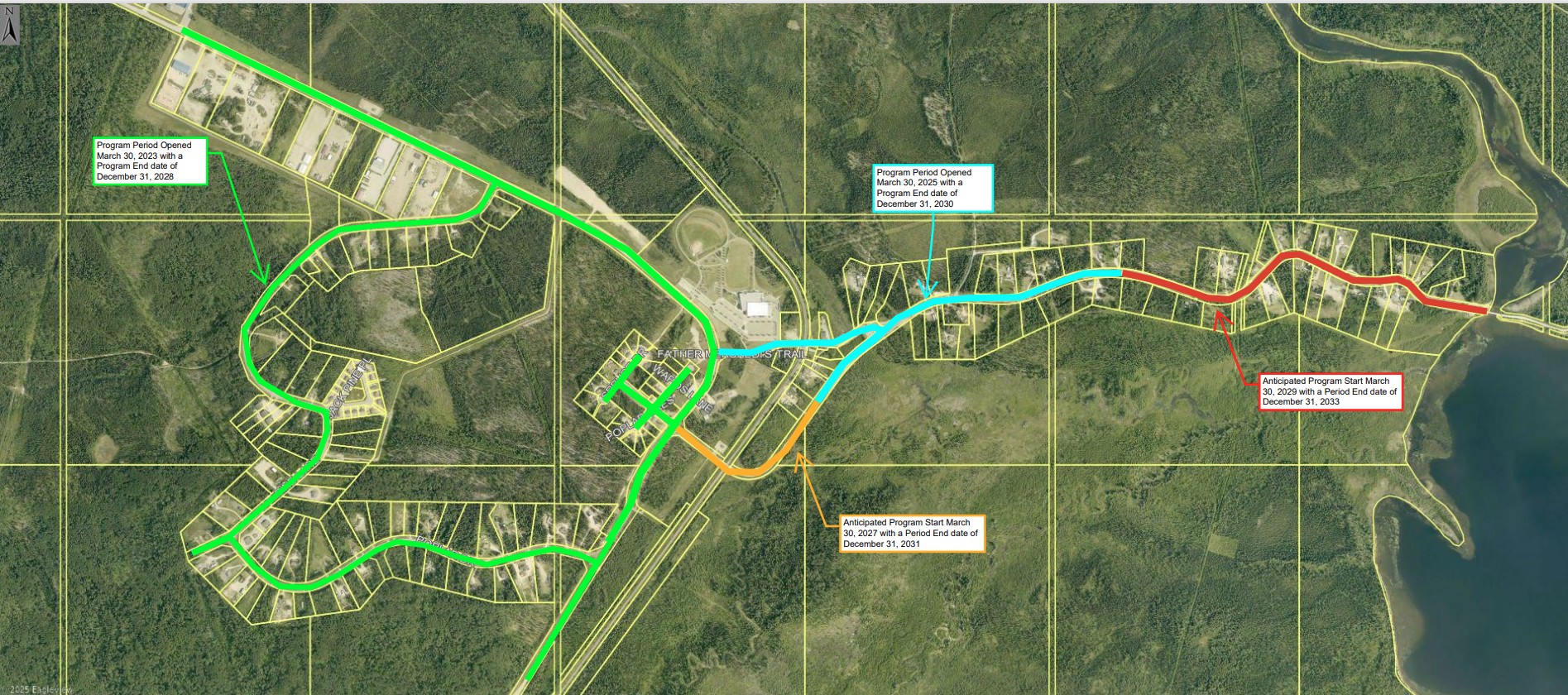 The cost to connect to the piped water and sewer systems is $10,000 in Saprae Creek Estates and $16,000 in Anzac, Conklin, Gregoire Lake Estates and Janvier. This can be paid as a lump sum payment following the completion of the installations by your contractor or as a flexible bi-monthly payment on your utility bill. Bi-monthly payments for the connection works are $65 or $105 every two months plus the costs of the water and sewer services.